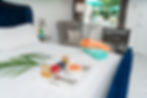 and features luscious green palm tree-filled landscapes that surround our turquoise blue private pool and jacuzzi.